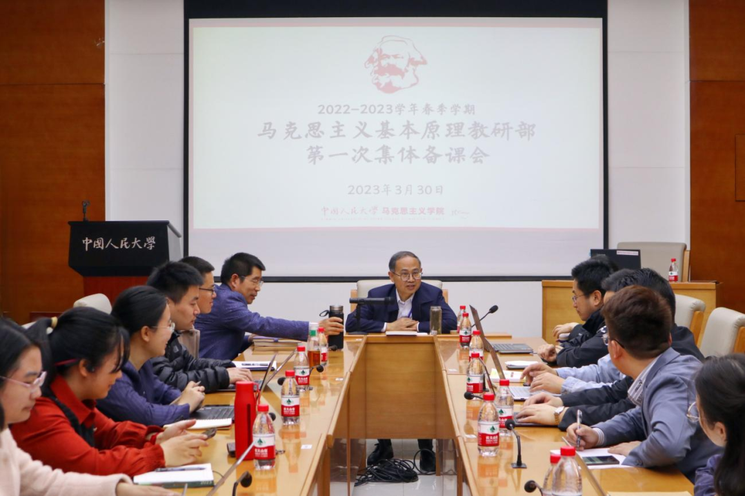 ▲中國人民大學(xué)舉辦《習(xí)近平新時(shí)代中國特色社會(huì)主義思想概論》集體備課會(huì),黨委書記張東剛領(lǐng)銜備課。