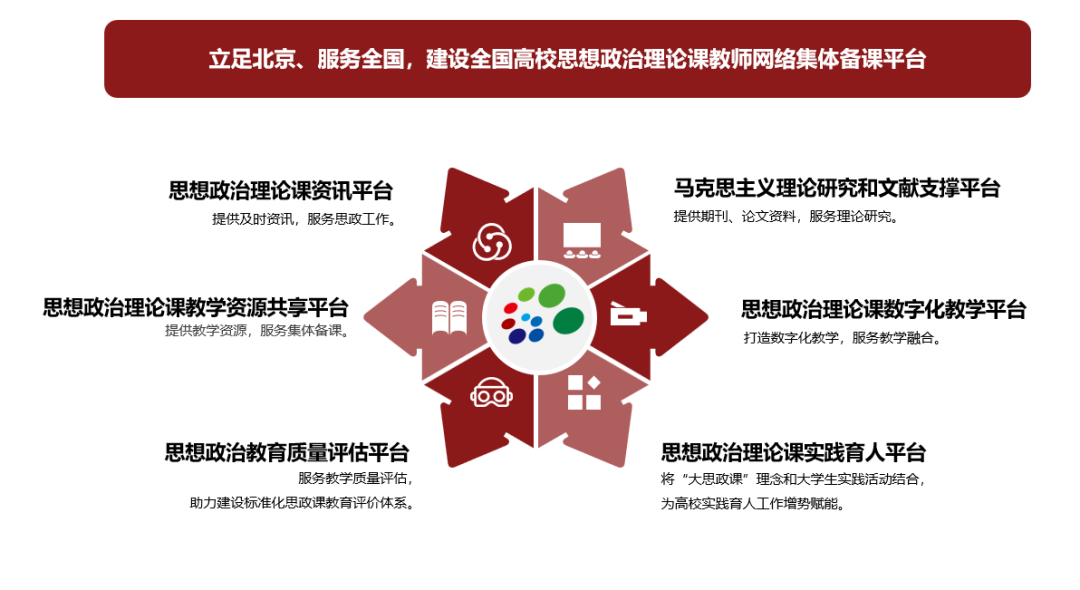 2019年的學(xué)校思想政治理論課教師座談會(huì)上,習(xí)近平總書記在談到各地各高校尤其是北京市的有益探索時(shí),專門提到了“北京高校思想政治理論課高精尖創(chuàng)新中心”。自2015年中心成立,中國人民大學(xué)全面建設(shè)面向大中小學(xué)思政課教師的一體化網(wǎng)絡(luò)資源平臺(tái),打造服務(wù)全國大中小學(xué)思政課教師的“中央廚房”。