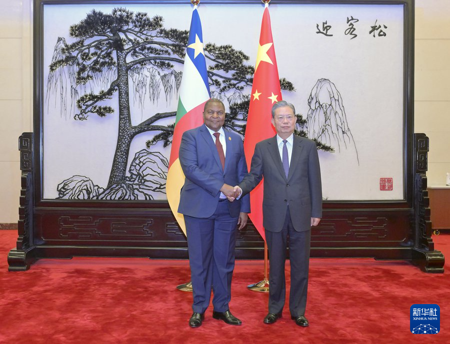 9月6日,全國人大常委會委員長趙樂際在北京會見來華出席中非合作論壇北京峰會的中非總統圖瓦德拉。新華社記者 高潔 攝