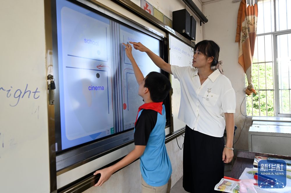 ↑在廣西南寧市邕寧區(qū)中和鎮(zhèn)中心學校周祿教學點,“90后”老師何海香在給學生上課(2024年9月4日攝)。