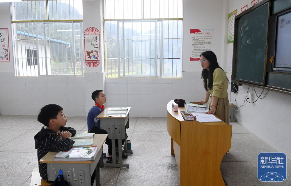 在廣西灌陽縣洞井瑤族鄉(xiāng)野豬殿小學,“95后”老師趙艷在給學生上課(2024年3月27日攝)。