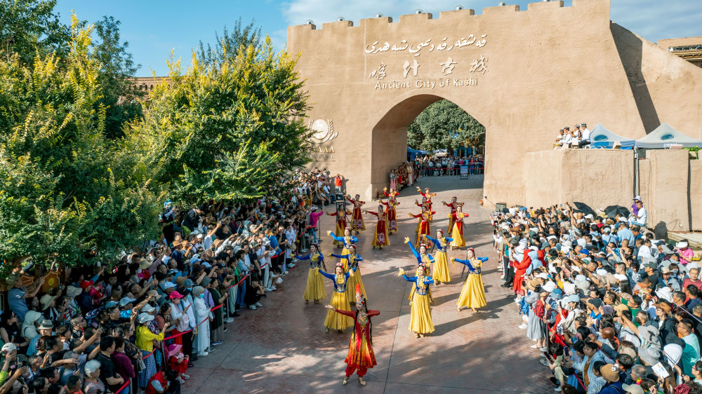 新疆喀什古城景區(qū)開(kāi)城儀式現(xiàn)場(chǎng)。新華社發(fā)(熱衣丁·蘇來(lái)曼 攝)
