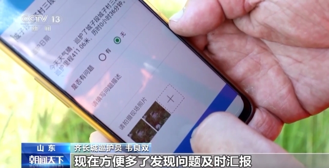 不只新材料,近年來山東出臺《山東省齊長城保護條例》,依據齊長城在沿線7座城市的長度和巡護任務量,共設置了860名公益巡護員,每天一次對齊長城進行巡護。在齊長城淄博段,記者看到,現在巡護員們還有了“智慧幫手”。