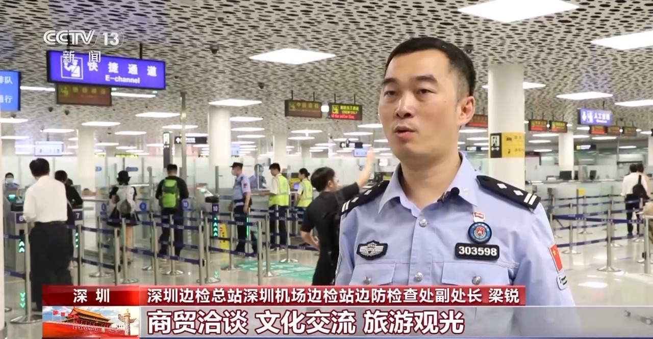 深圳邊檢總站深圳機場邊檢站邊防檢查處副處長 梁銳:今年經深圳機場來華商貿洽談、文化交流、旅游觀光、探親訪友的入境外籍人員超36萬人次,同比增長約143%。其中,免簽入境外籍人員超13萬人次,同比增長5倍多。