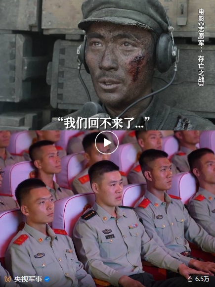 近日,武警北京總隊(duì)機(jī)動(dòng)某支隊(duì)官兵觀看了電影《志愿軍:存亡之戰(zhàn)》。(該支隊(duì)特戰(zhàn)一中隊(duì)前身原隸屬電影中“英雄鐵軍”63軍188師,是這部電影中主要描繪的連隊(duì)原型。)在電影里,63軍188師營指導(dǎo)員李想說完“一營倒下了,我們回不來了,你們繼續(xù)前進(jìn)”,眼含熱淚的官兵響亮回答:“我們繼續(xù)前進(jìn)!我們繼續(xù)前進(jìn)!我們繼續(xù)前進(jìn)!”這一幕感動(dòng)了眾多網(wǎng)友。