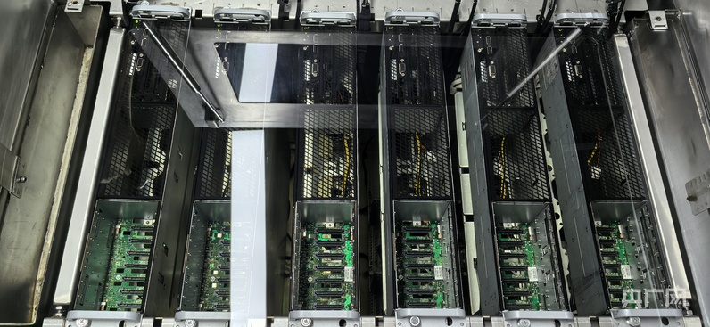 克拉瑪依市碳和水冷數(shù)據(jù)中心液體中正常運(yùn)轉(zhuǎn)的服務(wù)器 (央廣網(wǎng)記者丁安 攝)