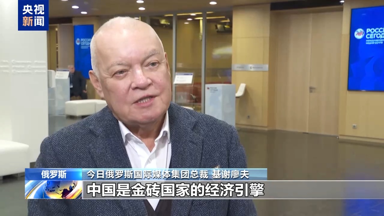 今日俄羅斯國際媒體集團總裁 基謝廖夫:中國是金磚國家的經(jīng)濟引擎,其他國家也作出了應(yīng)有的貢獻,我也非常希望金磚國家繼續(xù)加強人文合作。