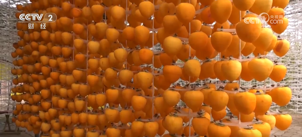 除了傳統的柿餅加工外,富平當地還拓展出冰柿、柿子飲品、柿葉茶等10余種產品。近年來,富平縣柿子栽種面積已達36萬畝,年產鮮柿28萬噸,加工柿餅7萬噸,柿子全產業鏈產值達到65億元,有效帶動了柿農增收。