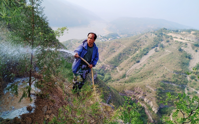 這支隊伍平均年齡超過45歲。從2004年至今的20年間,植樹攔泥沙、造林保水土,他們在宜川縣種下近4萬畝、280多萬棵樹,為宜川縣境內黃河沿岸石質山地披上了3.7萬畝“綠裝”。