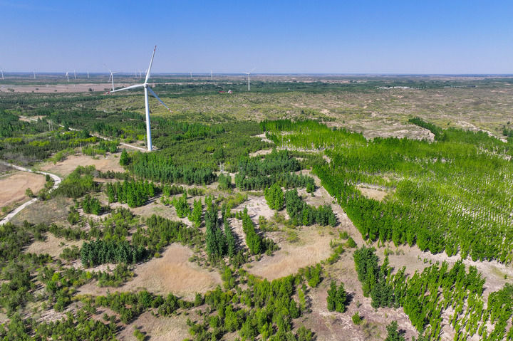 內蒙古自治區通遼市科爾沁左翼后旗,依托三北防護林體系建設、退耕還林、退牧還草等國家重點生態工程,讓科爾沁沙地加速披綠。