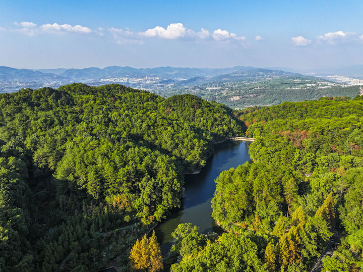 這是2024年10月15日在重慶市北碚區拍攝的縉云山國家級自然保護區景象(無人機照片)。新華社記者 王全超 攝