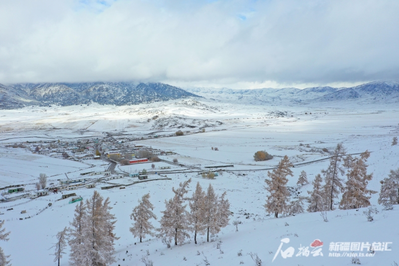 11月7日,俯瞰阿勒泰市切木爾切克鎮拜格托別村雪景。劉是何 攝