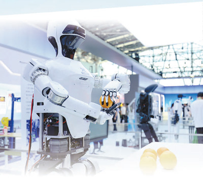 2024世界制造業大會上,人形機器人“啟江二號”正在抓取橙子。 張 敏攝