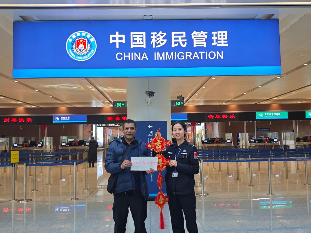 “歡迎回家!”“過年好!”“春節快樂!”移民管理警察的一聲聲問候,是旅客入境后感受到的第一縷中國溫暖。