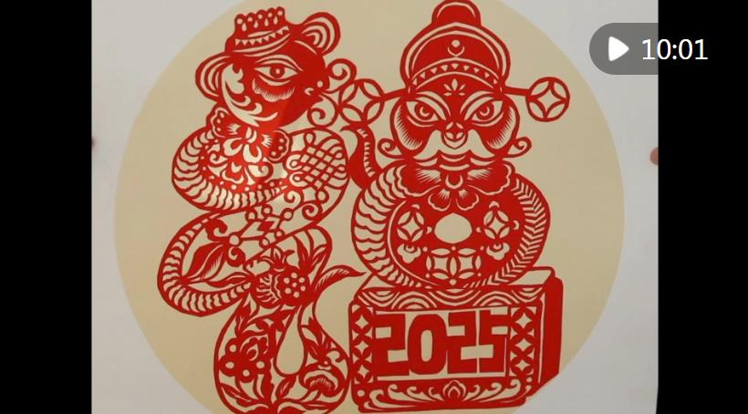 左手持紅紙,右手握剪刀,65歲的伏兆娥時(shí)而微笑、時(shí)而凝神,沉浸在創(chuàng)作之中。“送福蛇”,許仙、白娘子,“蛇盤兔”……伏兆娥制作了多幅造型各異的剪紙作品慶祝新春佳節(jié)的到來(lái)。