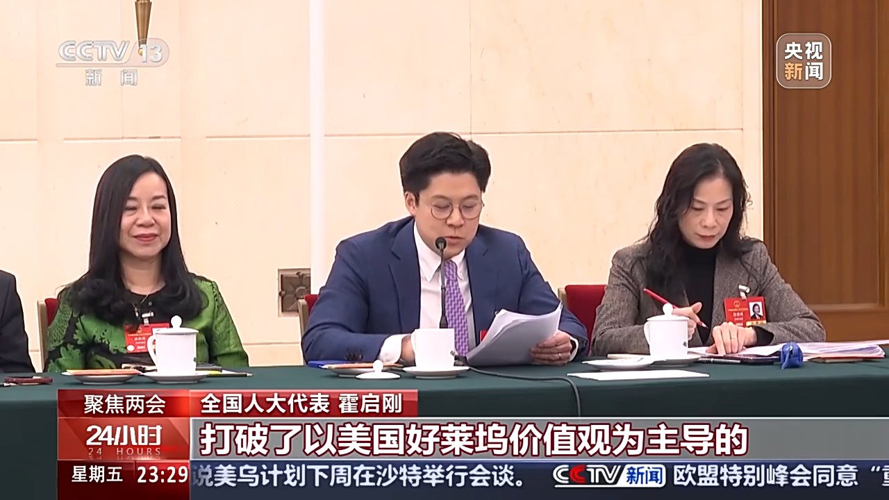 全國人大代表 霍啟剛:最近的《哪吒2》更創下票房歷史,打破了以美國好萊塢價值觀為主導的這種說故事的方式,成功以我們中國的故事和中國的哲學感染世界的觀眾。我認為香港可以更加用文化+的概念跟理念,在文化產業發展上作出更多的貢獻,更以香港國際橋梁和傳統優勢,實現中國文化抱團出海等,讓文化事業和文化產業得以相輔相成,把香港發揮成中華文化產業中的“金融港”和“出口港”。