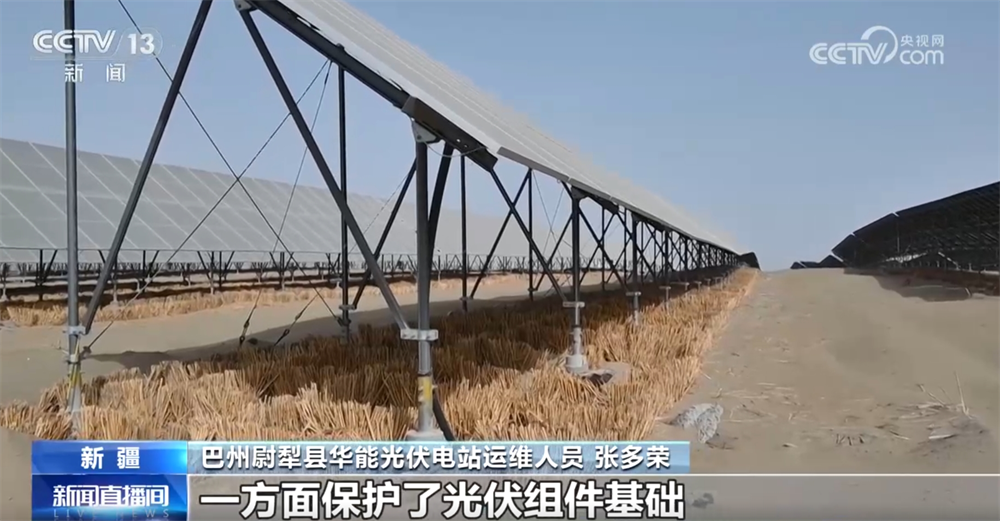 巴州尉犁縣華能光伏電站運(yùn)維人員張多榮稱:“大概兩個月時間就能抽穗發(fā)芽了,一方面保護(hù)了光伏組件基礎(chǔ)不被黃沙掩埋或掏空,另一方面改善了周圍環(huán)境。”
