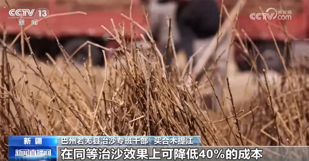 巴州若羌縣治沙專班干部買合木提江稱:“首次采用了“間隔治沙”這項(xiàng)創(chuàng)新治理模式,治理面積7.8萬畝,在同等治沙效果上可降低40%的成本?!?/p>