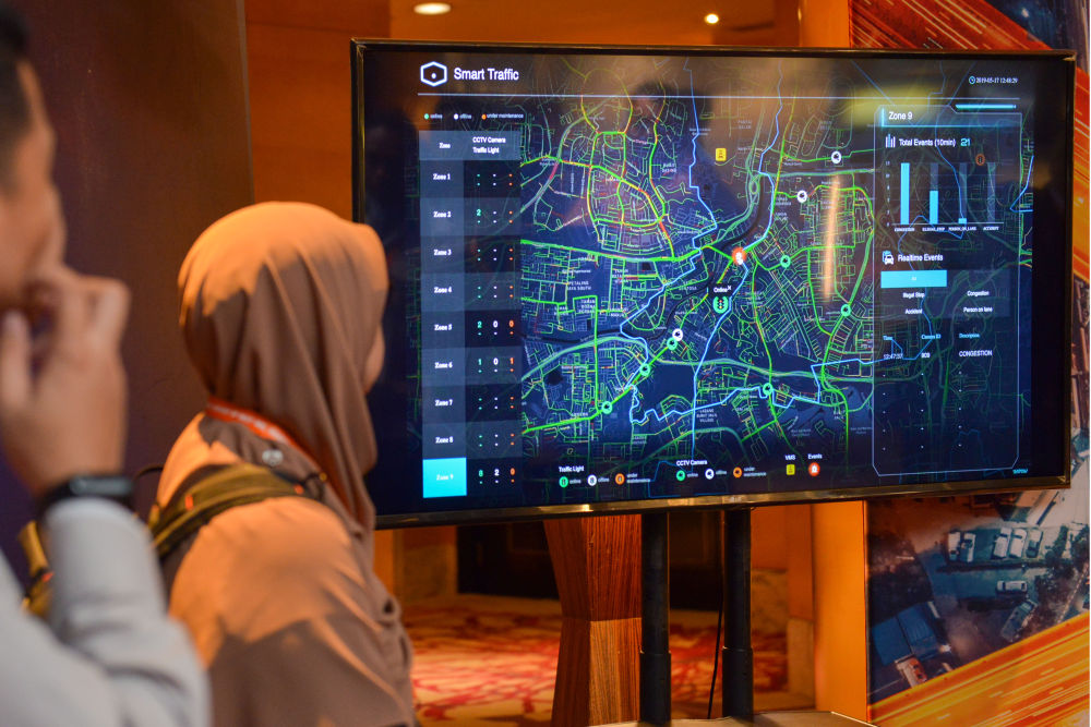 2019年,中國阿里巴巴集團旗下云計算及人工智能科技公司阿里云宣布與馬來西亞智能交通公司“塞納交通系統”合作,在馬來西亞共同打造智能交通管理系統。這是2019年5月23日在吉隆坡拍攝的智能交通管理系統演示現場。