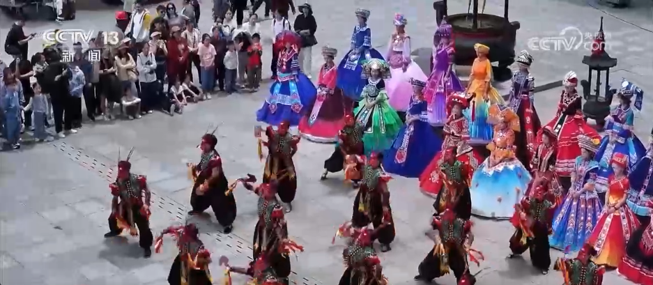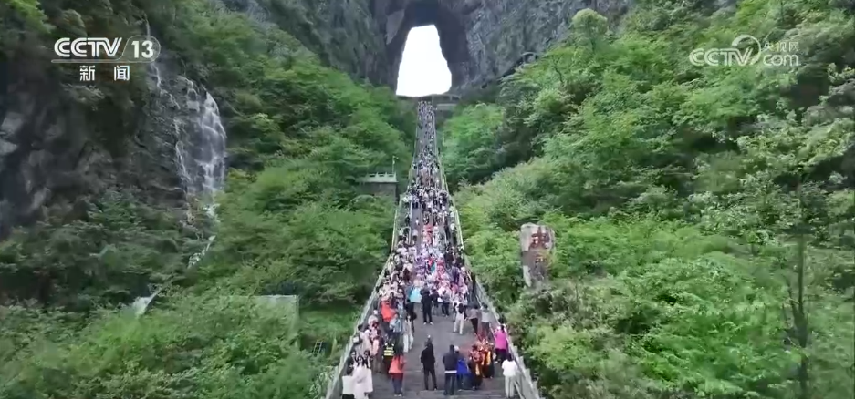 在湖南張家界天門山景區,“五一”假期開展了非遺民俗秀活動。民俗民間藝人們開展非遺巡游,表演了土家舞獅、土家三棒鼓、土家梯瑪舞等具有濃郁土家族特色的節目,吸引中外游客駐足觀看。