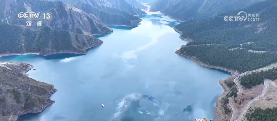 每年冬天,海拔1900多米的天山天池湖面封凍,封凍期達100多天。“五一”前夕,新疆阜康市天山天池景區冰雪消融,正式迎來“開湖”。