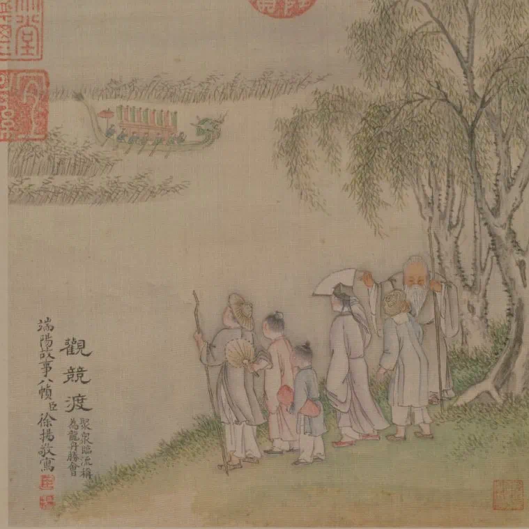 △《觀競(jìng)渡》,題:“聚眾臨流稱為龍舟勝會(huì)。”