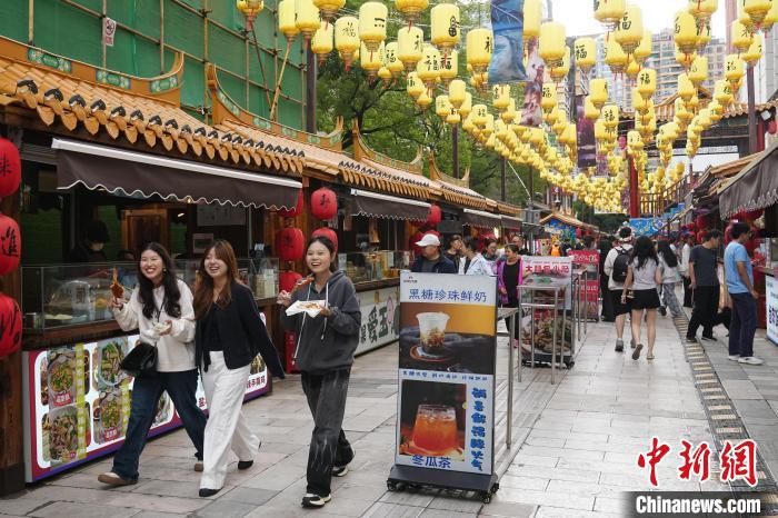 5月30日,匯聚美食的云南昆明臺北街吸引游客。中新社記者 劉冉陽 攝