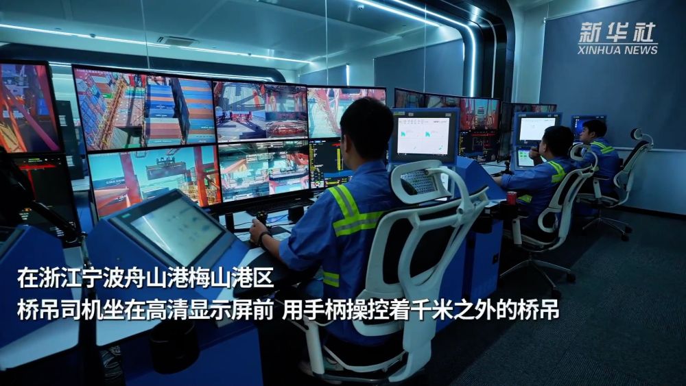 在浙江寧波舟山港梅山港區,橋吊司機坐在高清顯示屏前,用手柄即可操控著千米之外的橋吊,這一變革得益于港區打造的大規模遠控自動化作業集群。