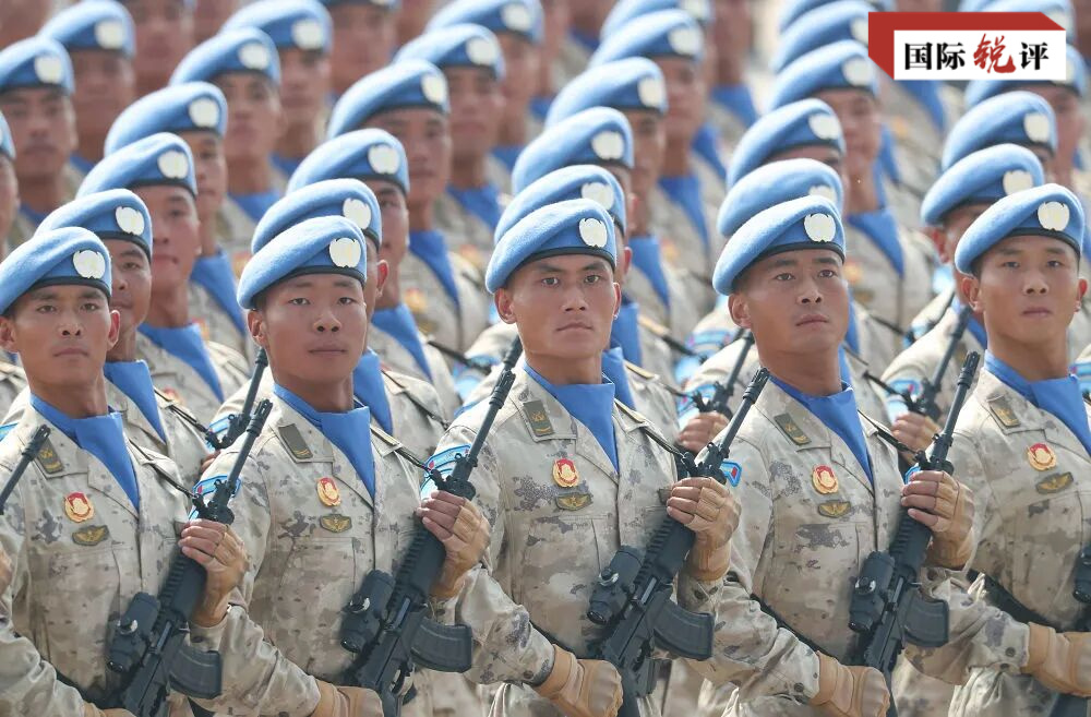 在這次受閱的45個方(梯)隊中,有一支頭戴藍色貝雷帽的維和部隊方隊。參加聯合國維和行動35年來,“中國藍盔”不懼艱險,用行動譜寫大國擔當。從前往亞丁灣、索馬里海域執行護航任務,到“和平方舟”號醫院船進行援外醫療,中國人民解放軍為維護世界和平作出重要貢獻。