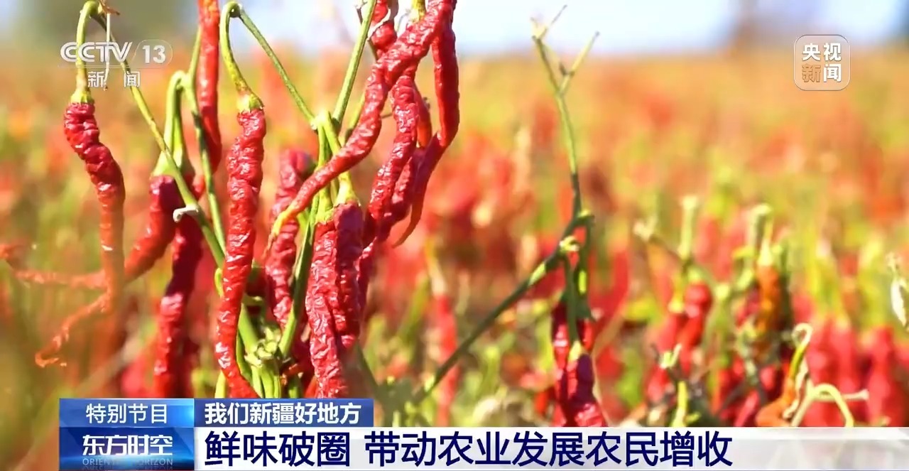 說完了主角,再來說說配菜。這里面的土豆來自博爾通古鄉(xiāng)。最關(guān)鍵的辣椒,是當(dāng)?shù)氐闹饕r(nóng)作物,來自“辣椒之鄉(xiāng)”安集海鎮(zhèn)。過去這里的辣椒只是農(nóng)民零散種植,如今已經(jīng)形成了從育種、種植、加工到銷售的完整產(chǎn)業(yè)鏈。這些辣椒不僅給大盤雞“注入靈魂”,也滿足了全國(guó)的餐桌需求,還出口到韓國(guó)、日本等地。