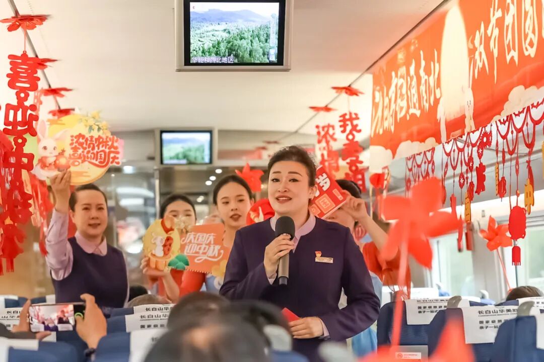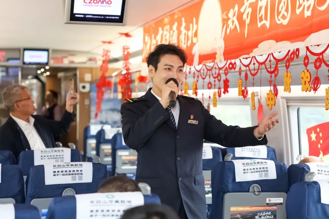 沈佳高鐵沈白段開通運營后,迎來第一個國慶中秋假期。長春客運段在長春至青島北的G3565次列車上舉辦“‘我的鐵路風景’——沈白高鐵通南北 雙節(jié)團圓路更捷”列車聯(lián)歡活動。
