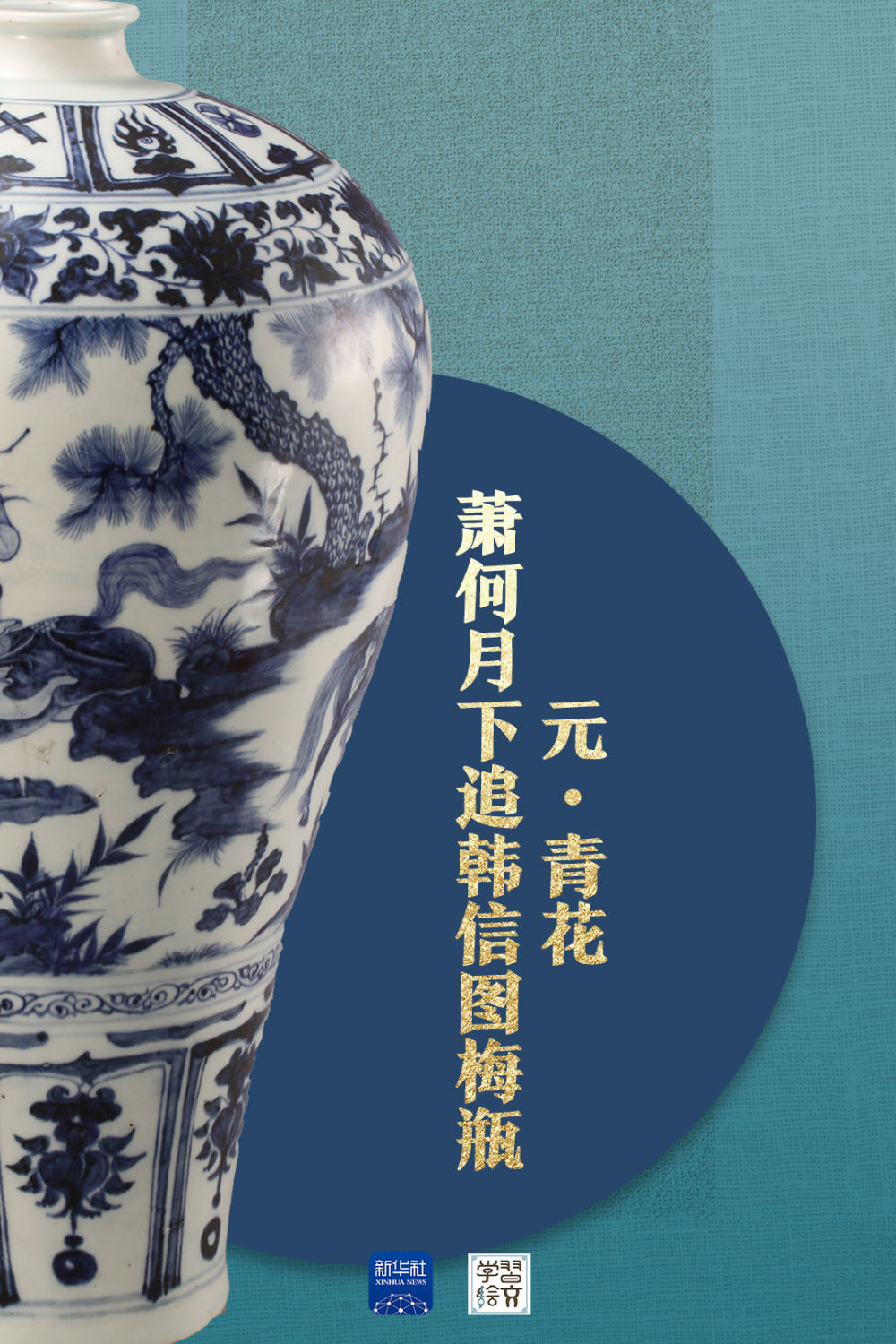 “元代是中國陶瓷史上不容忽視的重要時期。”宋燕介紹,這件藏于南京市博物館的元青花蕭何月下追韓信圖梅瓶向人們展示了元代制瓷水平。