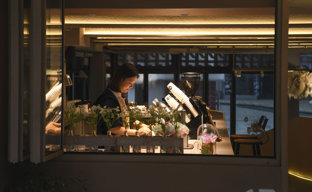 2024年4月22日,在重慶市九龍坡區謝家灣街道民主村社區,飲品店工作人員在店內忙碌。