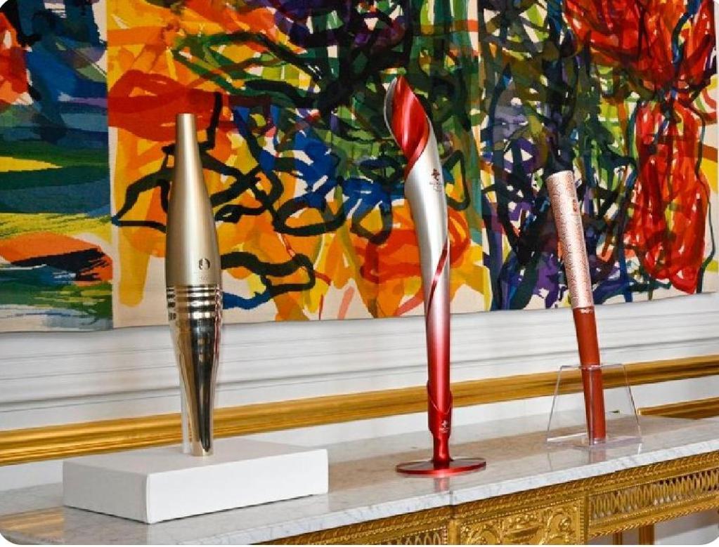 這是習(xí)近平主席同馬克龍總統(tǒng)會(huì)談前,兩國元首夫婦互贈(zèng)的禮品之一。習(xí)近平主席贈(zèng)送給馬克龍總統(tǒng)的是北京雙奧火炬,馬克龍總統(tǒng)則以巴黎奧運(yùn)火炬回贈(zèng)。