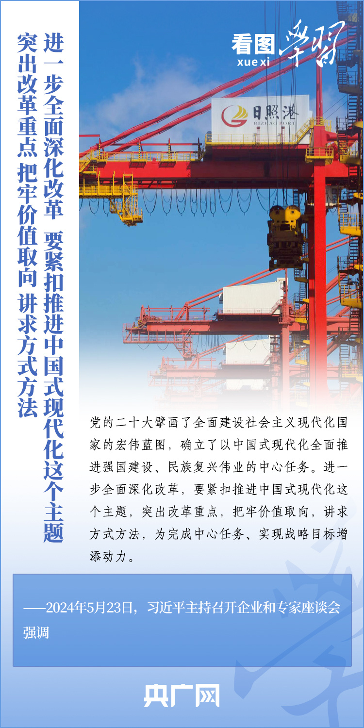 改革是發展的動力。5月23日,習近平總書記在山東濟南主持召開企業和專家座談會并發表重要講話。總書記強調,進一步全面深化改革,要緊扣推進中國式現代化這個主題,突出改革重點,把牢價值取向,講求方式方法,為完成中心任務、實現戰略目標增添動力。一起來學習!