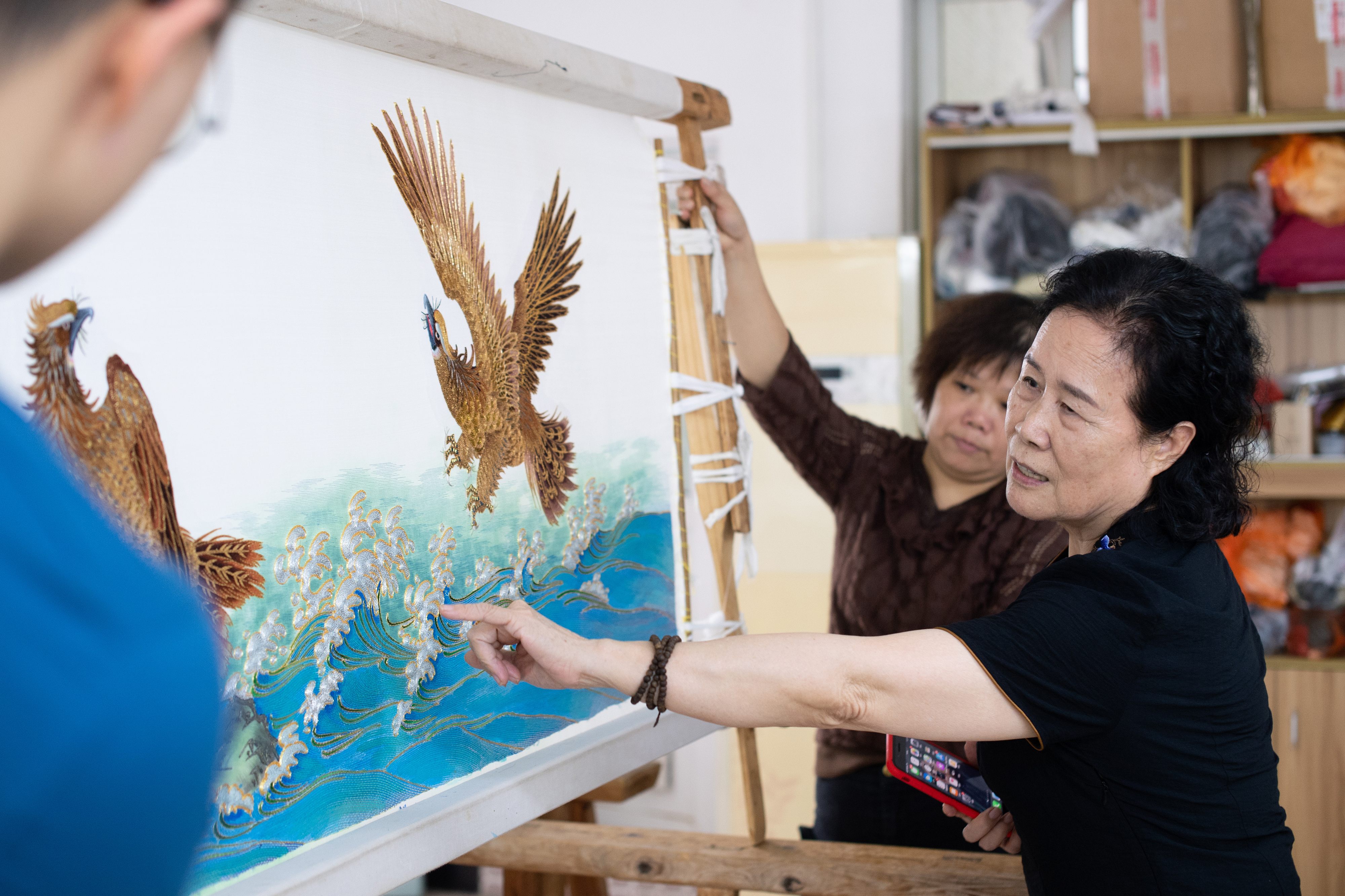 國家級非物質文化遺產代表性項目粵繡(潮繡)代表性傳承人康惠芳。