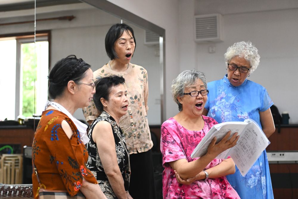 6月20日,寧夏銀川市金鳳區長城花園社區居民在練習唱歌。
