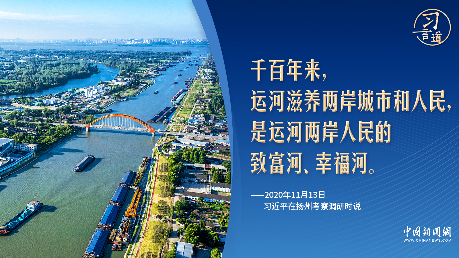 “千百年來,運河滋養兩岸城市和人民,是運河兩岸人民的致富河、幸福河。”2020年考察揚州運河三灣生態文化公園時,習近平一句“致富河、幸福河”指出了運河保護的更深意涵。