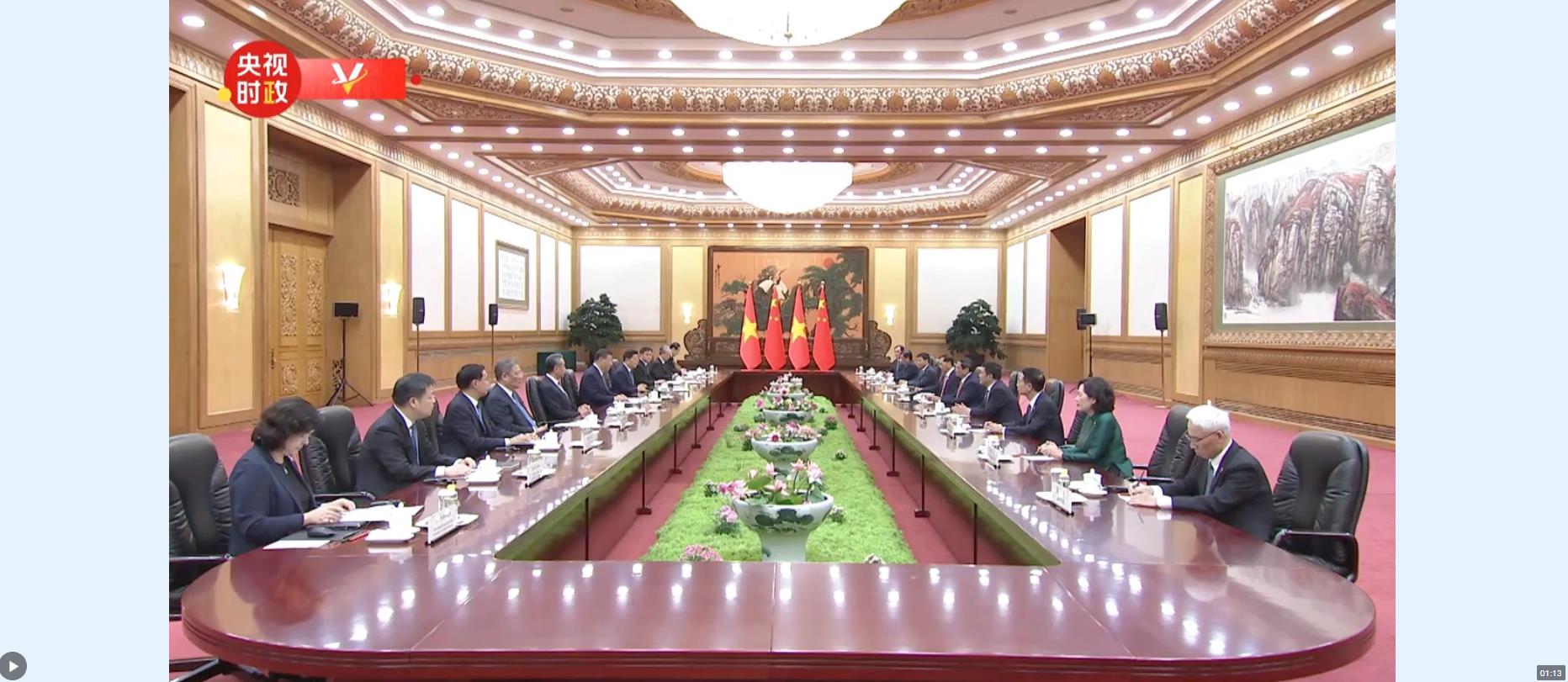 習(xí)近平指出,很高興再次與范明政總理會(huì)面。歡迎你來華出席夏季達(dá)沃斯論壇。去年年底我訪問越南期間,同阮富仲總書記一道宣布構(gòu)建具有戰(zhàn)略意義的中越命運(yùn)共同體,引領(lǐng)兩國(guó)關(guān)系進(jìn)入新階段。半年多來,兩黨兩國(guó)高層交往密切,各領(lǐng)域合作進(jìn)展順利,中越命運(yùn)共同體建設(shè)開局良好,給兩國(guó)人民帶來實(shí)實(shí)在在的利益,我們對(duì)此深感高興。