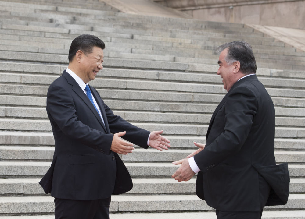 2019年6月15日,國家主席習近平在杜尚別出席儀式,接受塔吉克斯坦總統(tǒng)拉赫蒙授予“王冠勛章”。