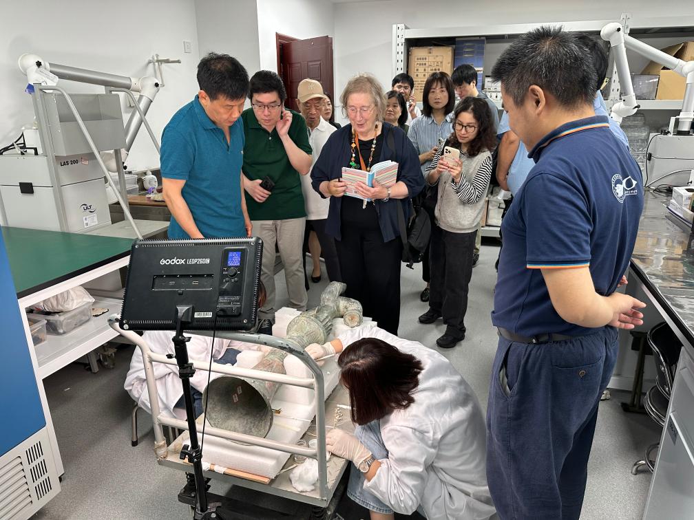 2024年5月28日,英國考古學家、牛津大學教授杰西卡·羅森在文物保護修復實驗室觀摩文物。新華社發(四川省文物考古研究院供圖)