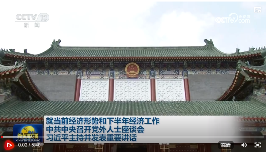 就當前經濟形勢和下半年經濟工作 中共中央召開黨外人士座談會 習近平主持并發表重要講話