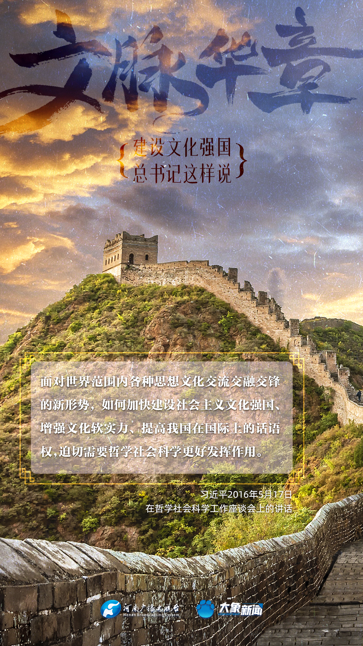黨的十八大以來,習近平總書記站在全局和戰略高度,就建設社會主義文化強國提出一系列新思想新觀點新論斷,為我們堅定文化自信,堅持中國特色社會主義文化發展道路,提供了指引。大象新聞與您一起學習、領悟。