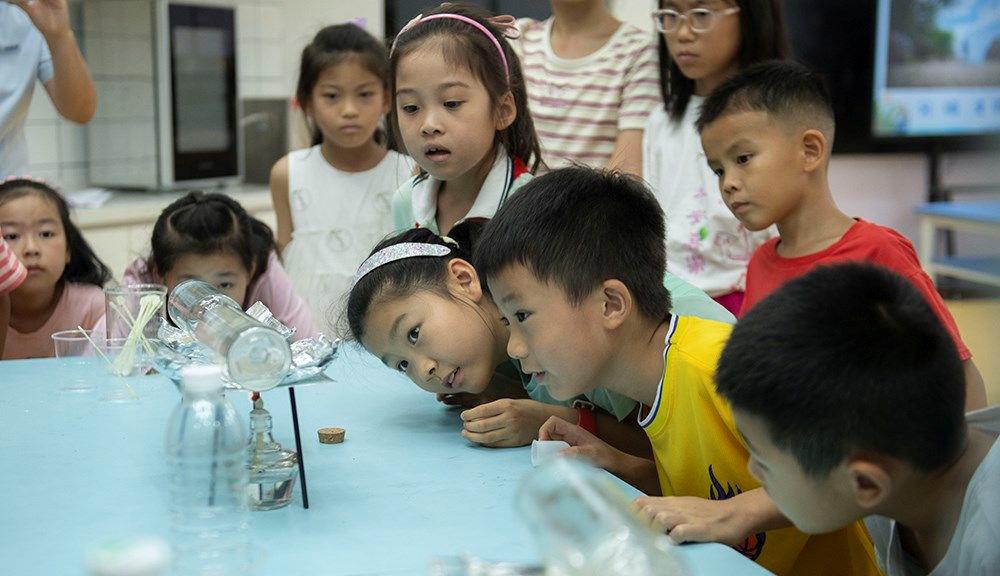 安徽科技館,小朋友觀察海水淡化科學實驗。