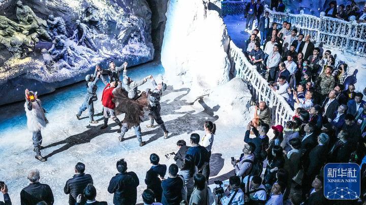 2023年10月22日,觀眾在“紅飄帶”數字體驗館內觀看體驗長征故事(來源:新華社)