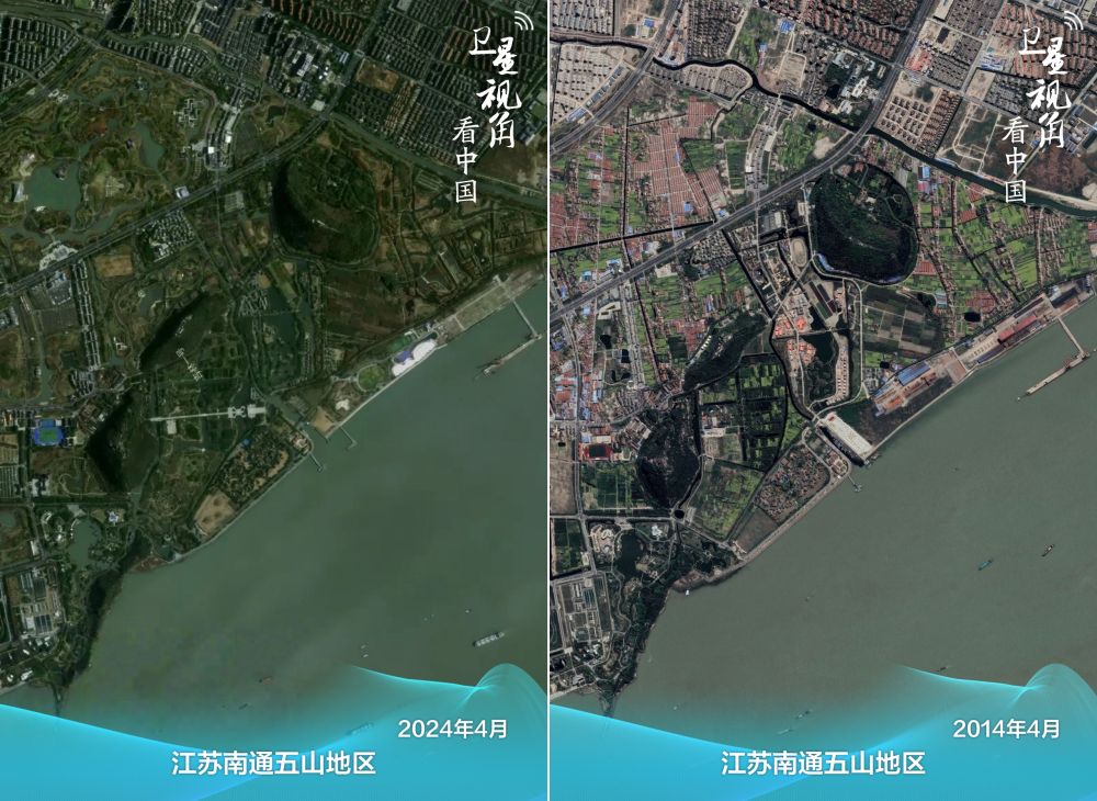 近年來,南通市啟動五山沿江地區生態修復和保護工作,統籌推進沿江地區產業退、港口移、城市進、生態保,修復岸線12公里,新增森林面積約6平方公里,實現了從“臨江”到“濱江”、從工業“銹帶”到生態“秀帶”的蝶變。
