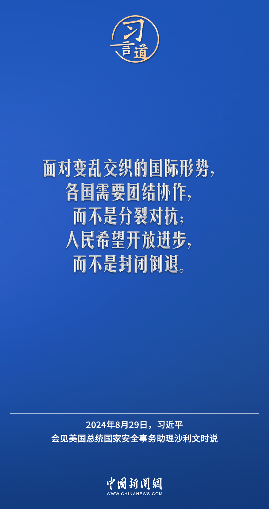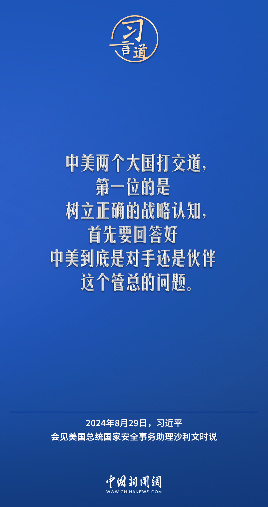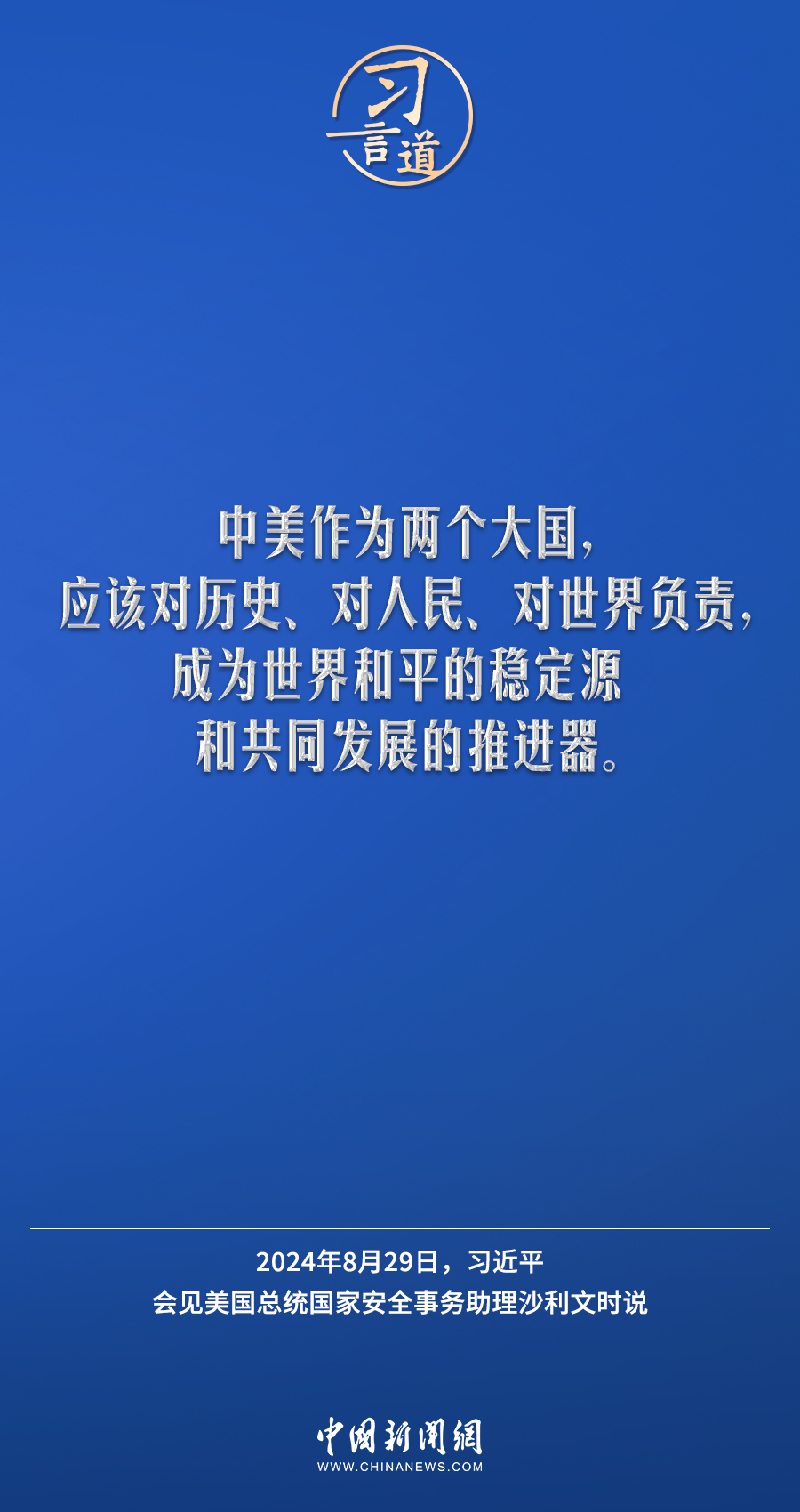 8月29日,國家主席習近平在北京人民大會堂會見美國總統國家安全事務助理沙利文。習近平指出——