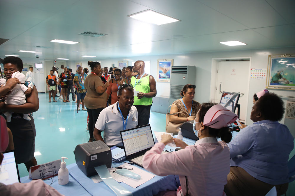 2024年8月12日,中國海軍“和平方舟”號醫院船在莫桑比克馬普托開展醫療服務。