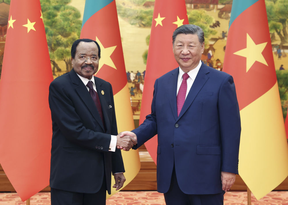 9月4日晚,國家主席習近平在北京人民大會堂會見來華出席中非合作論壇北京峰會的喀麥隆總統比亞。兩國元首宣布,將中喀關系提升為全面戰略伙伴關系。