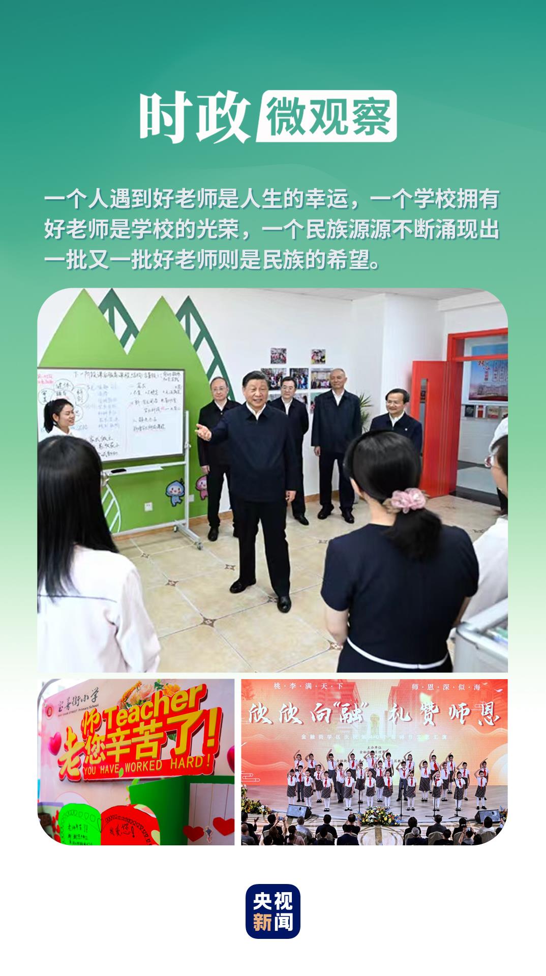 教師承載著傳播知識、傳播思想、傳播真理,塑造靈魂、塑造生命、塑造新人的時代重任。一直以來,習(xí)近平總書記高度重視教育發(fā)展和教師工作,以各種形式表達關(guān)懷、提出期望。